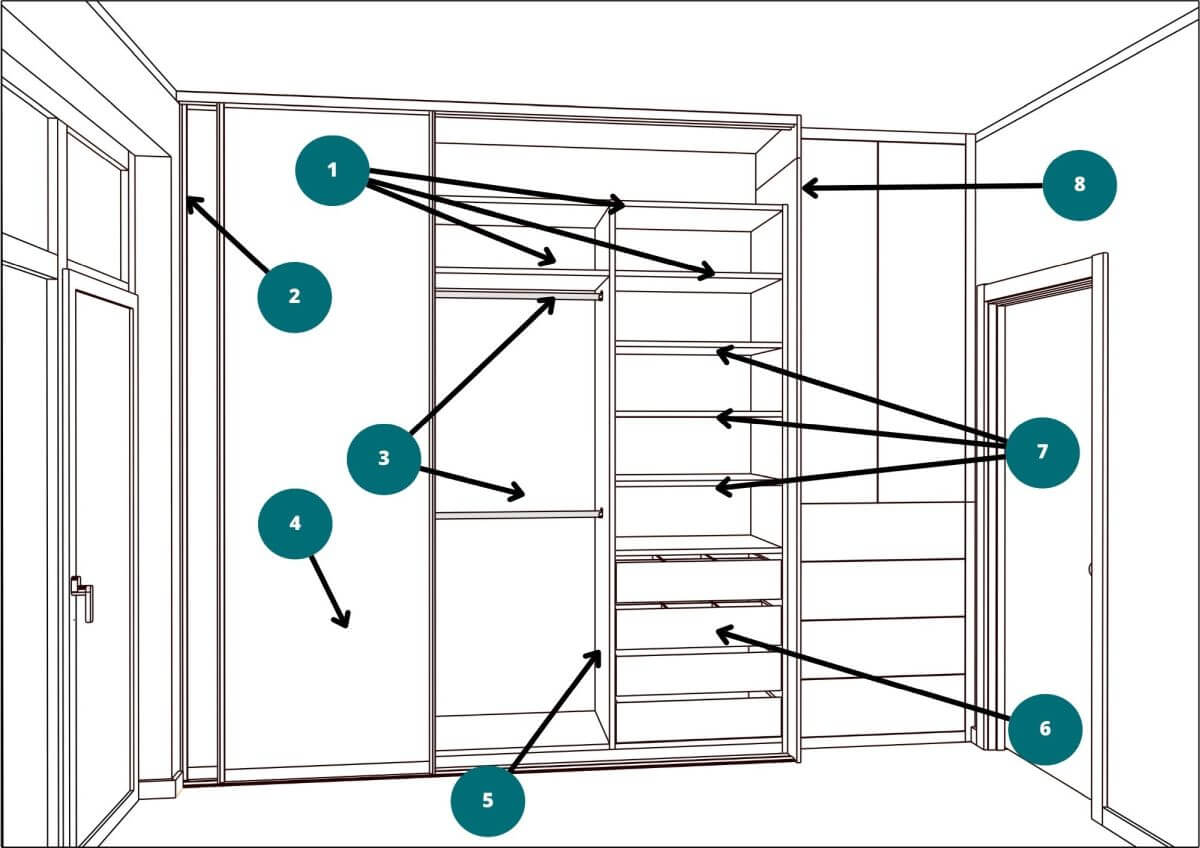 - 7. Voľné police na podperách, môžete ich nastavovať vďaka predvŕtanému vertikálnemu rastru